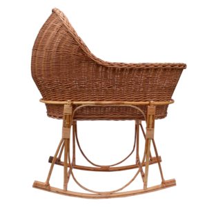 Kołyska Rockingbaby jest stojakiem przeznaczonym do koszy Mojżesza Ahoj Baby z łuski kukurydzianej oraz Paper Dream ze sznurka papierowego.